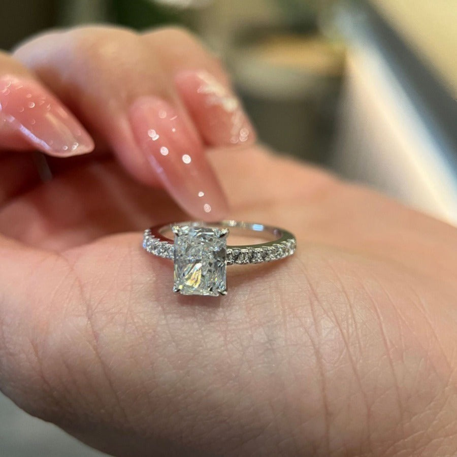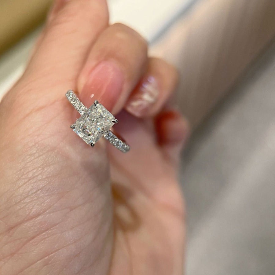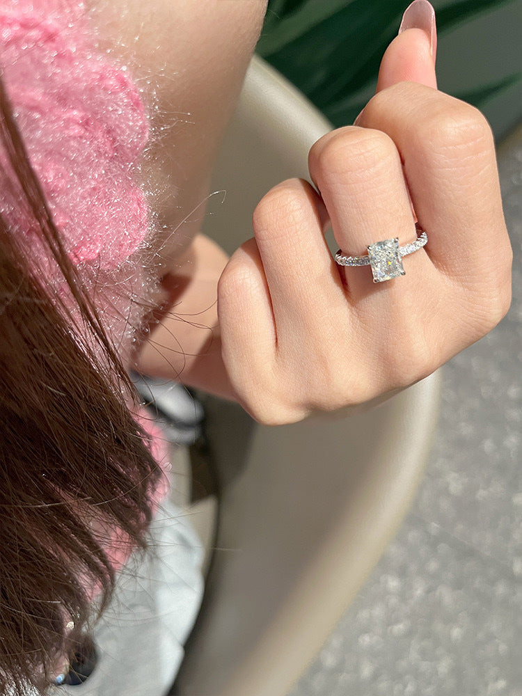 Crafted from durable white copper and finished with precision electroplating for a lasting lustrous shine. The 3 Karat square diamond is securely set and polished for maximum brilliance, delivering a luxurious look without compromise.