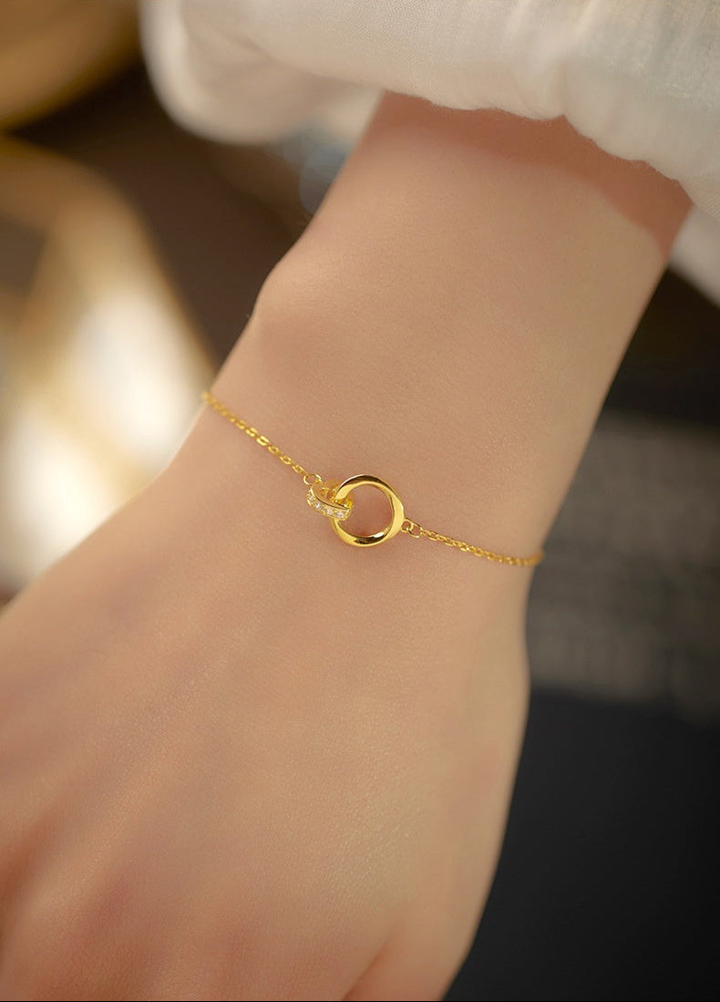 The Lunara Loop bracelet features a modern Möbius-inspired design, combining elegant curves with the lustrous shine of S925 sterling silver. Finished with electroplating, it offers a radiant look in both white gold and yellow gold tones, making it a versatile and stylish accessory for women.