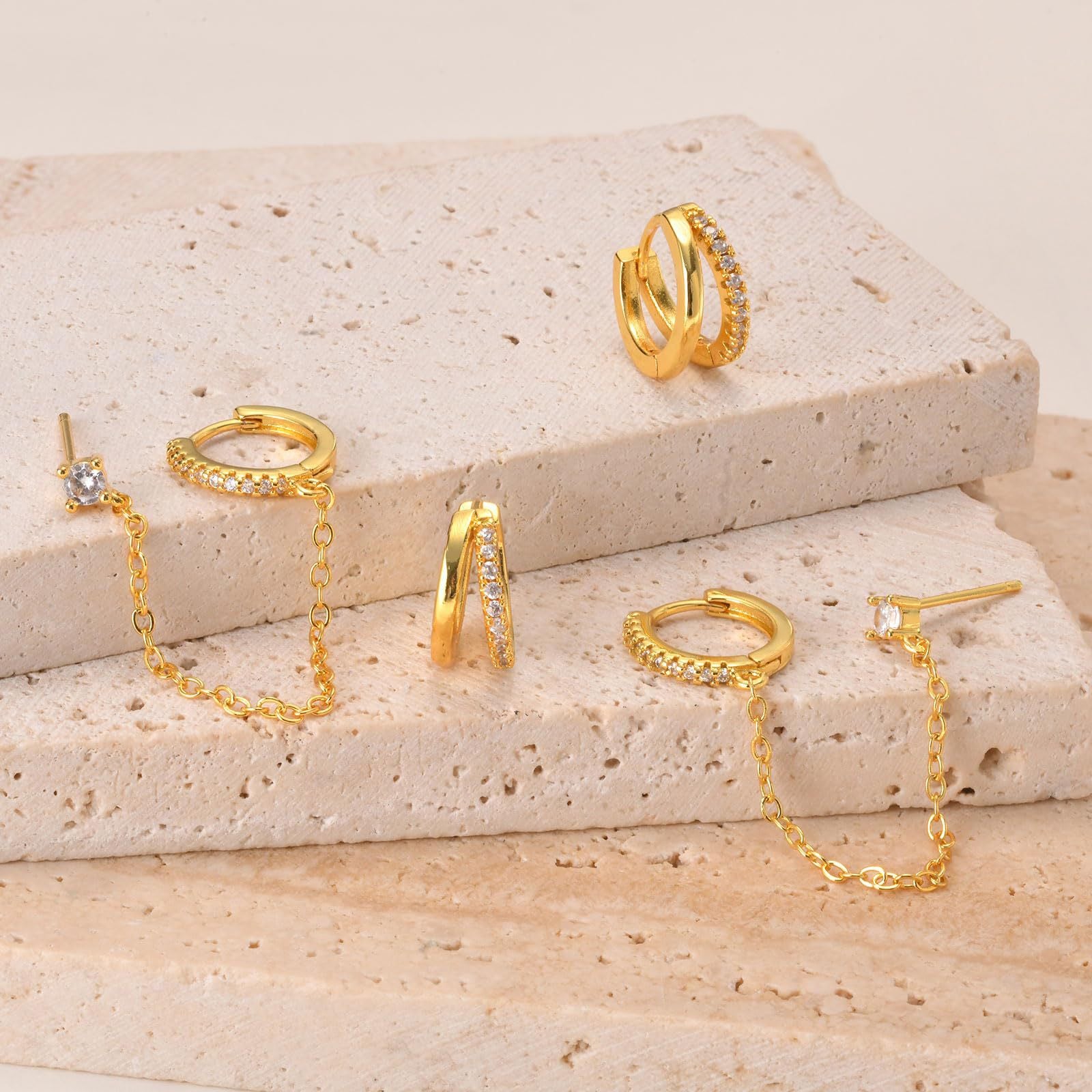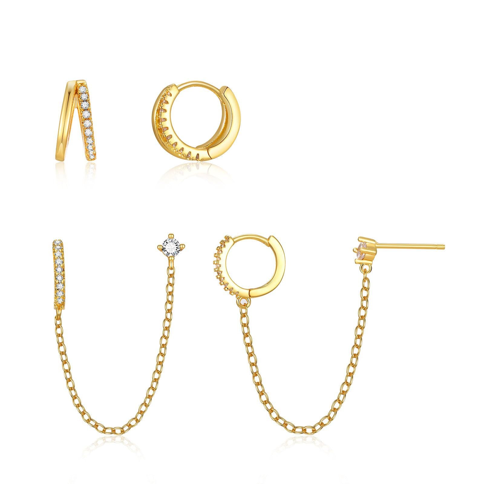 Sleek and modern 14K gold geometric earrings, sold as a single-ear two-pack. Designed for women who appreciate fashionable office look (OL) style, featuring round and geometric shapes for a minimalist yet elegant appeal.