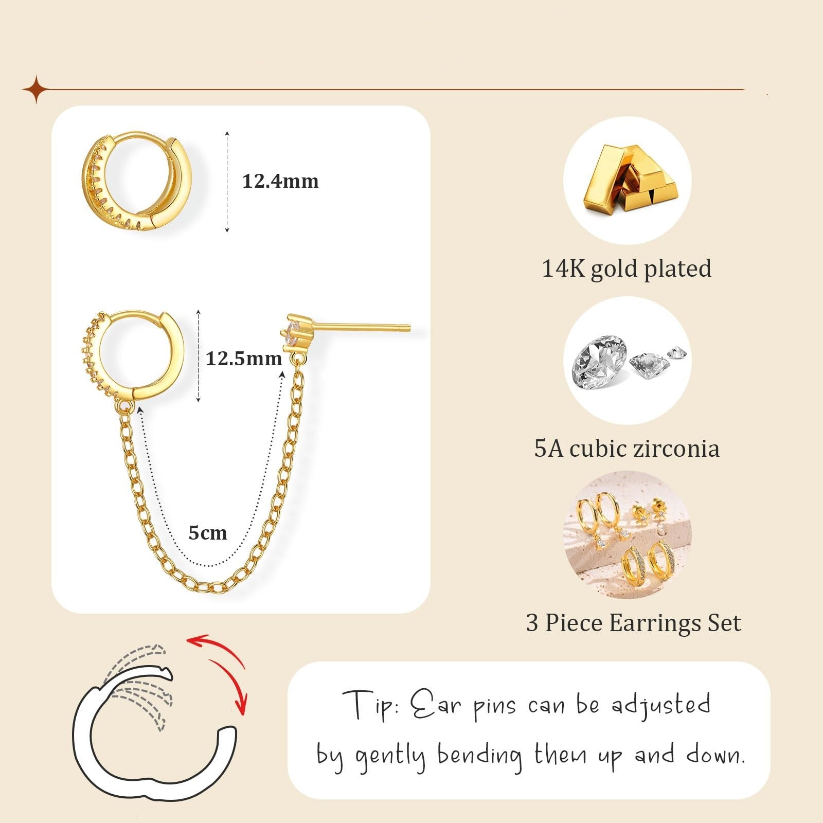 Crafted from durable copper and plated with premium 14K gold for lasting shine and elegance.